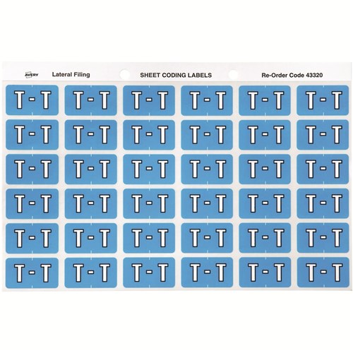 Avery Alphabet Coding Label T Side Tab 25x38mm Blue Pack Of 180