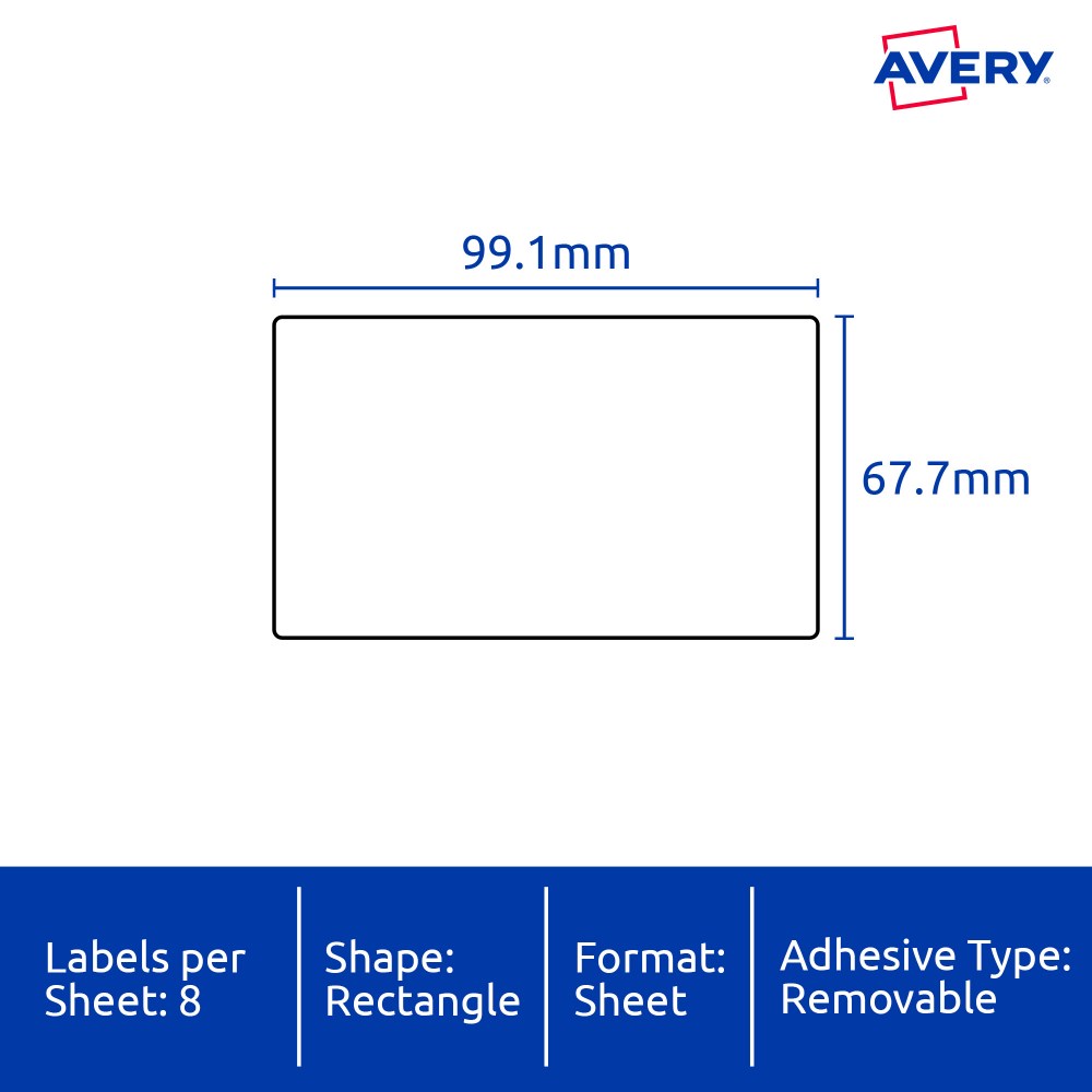 Avery Identification Removable Heavy Duty Laser White L4715 99.1x67.7mm 8UP 160 Labels