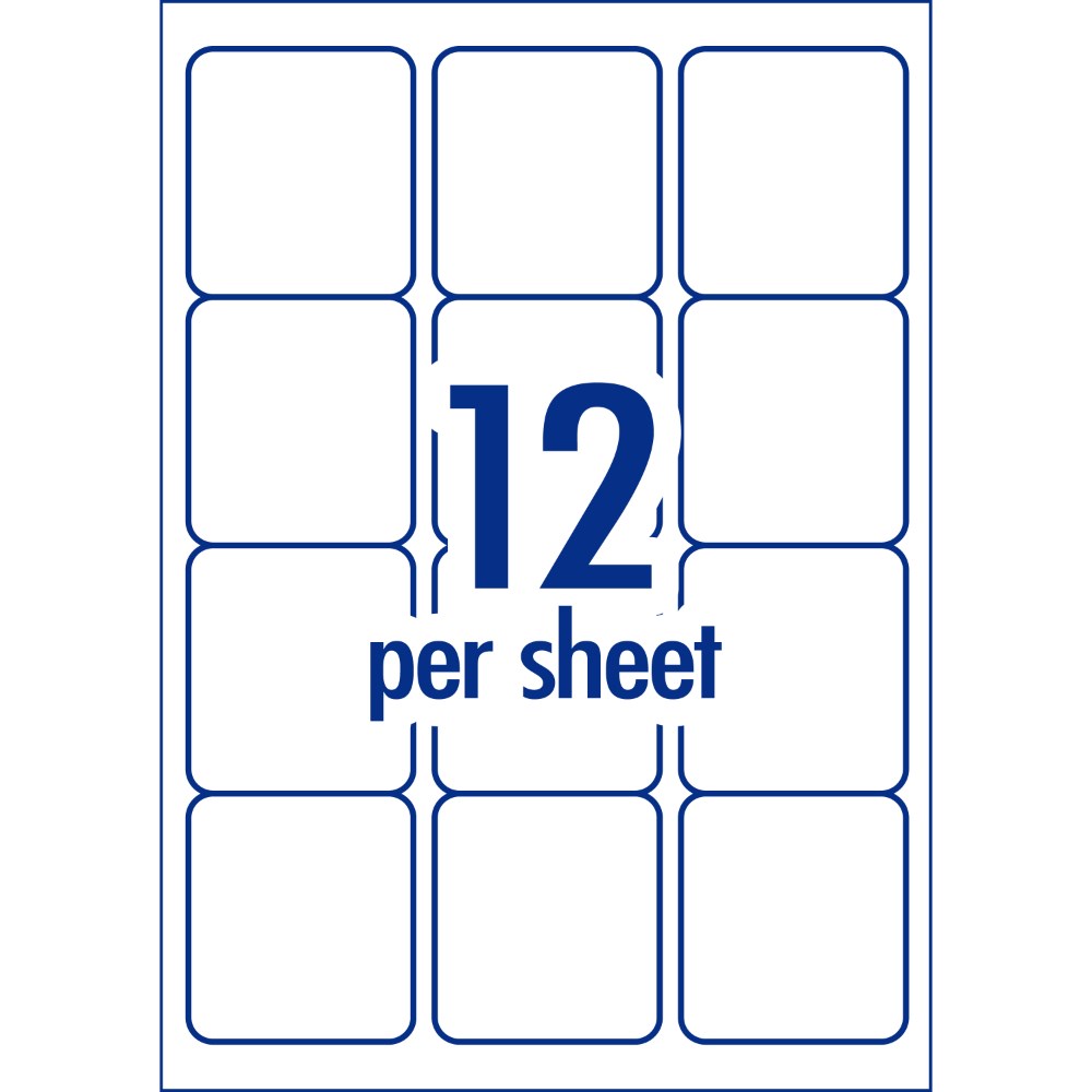 • Size: 63.5 x 72mm, 1200 labels, 100 sheets. 12 labels per sheet (12UP).