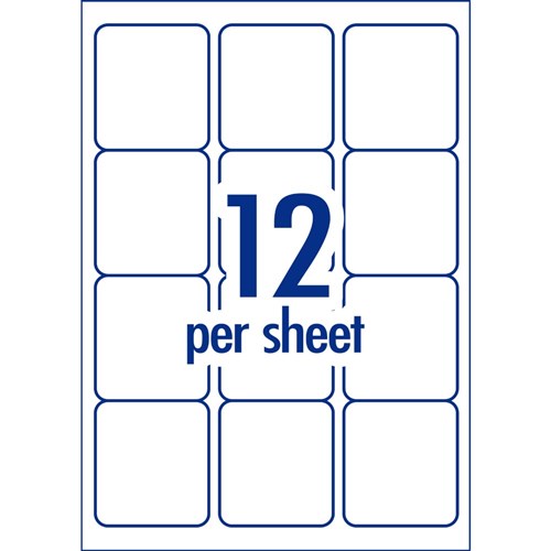 • Size: 63.5 x 72mm, 600 labels, 50 sheets, 12 labels per sheet (12UP).