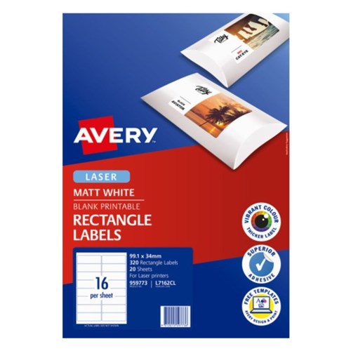 Avery Printable Labels L7162CL 99.1 x 34mm Rectangle Photo Matte White 16UP 320 Labels