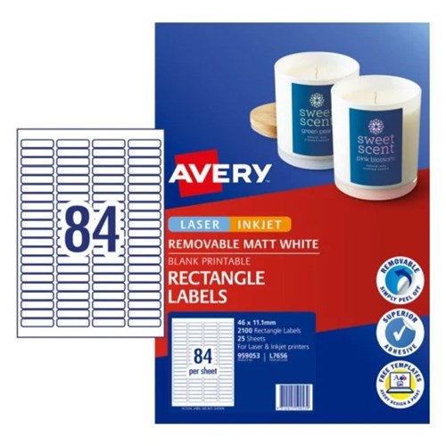 Avery Removable Labels L7656 46 x 11.11mm Rectangle Matte White 84UP 2100 Labels