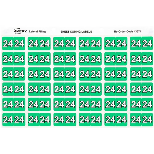 Avery Side Tab 24 Year Code Labels 25 x 38mm Green Pack of 180