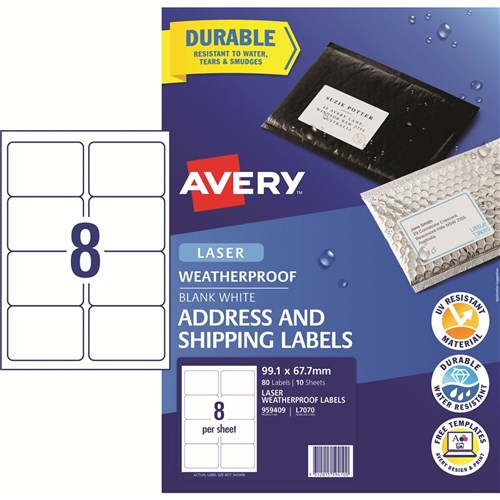 Avery Weatherproof Address & Shipping Laser White L7070 99.1x67.7mm 8UP 80 Labels