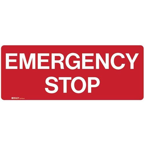 Brady Emergency Sign Emergency Stop 450W x 180mmH Polypropylene White/Red