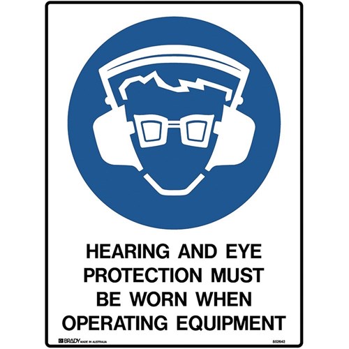 Brady Mandatory Sign Hearing And Eye Protection 450W x 600mmH Metal White/Blue