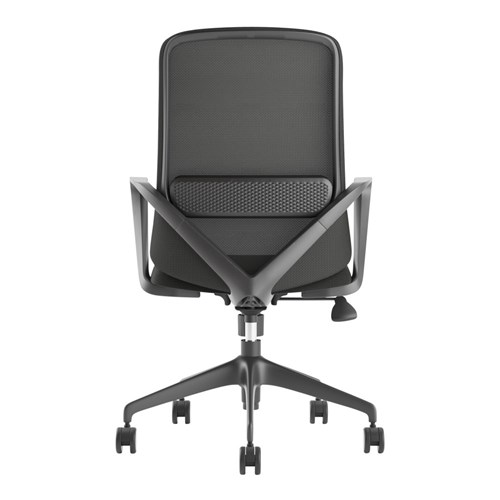 • Composition: Mesh back with lumbar support, upholstered seat and strong nylon 5 star base with 60mm nylon castors. Fixed looped armrests.