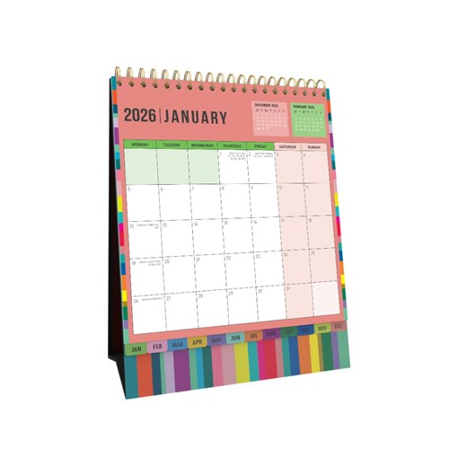 Collins Desktop Calendar 175 x 220mm Month To View Edge Rainbow
