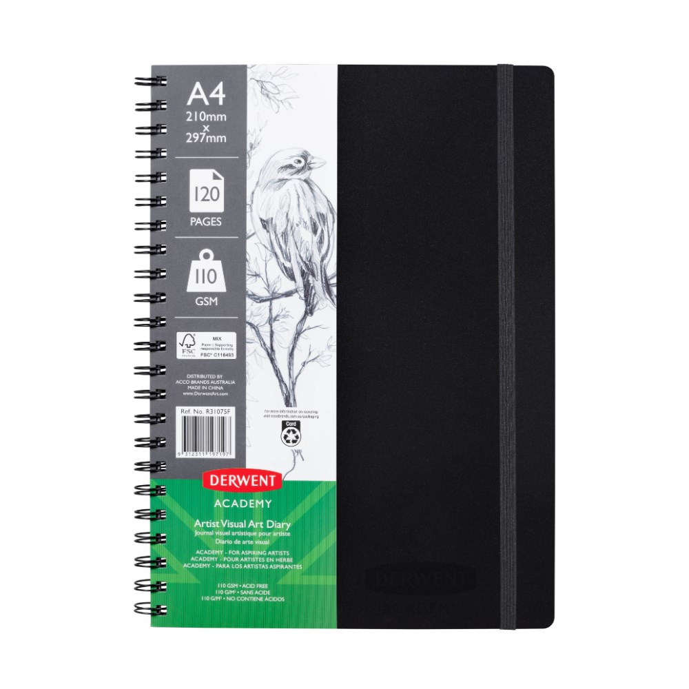 Derwent Academy Visual Art Diary A4 120 Page Portrait Black