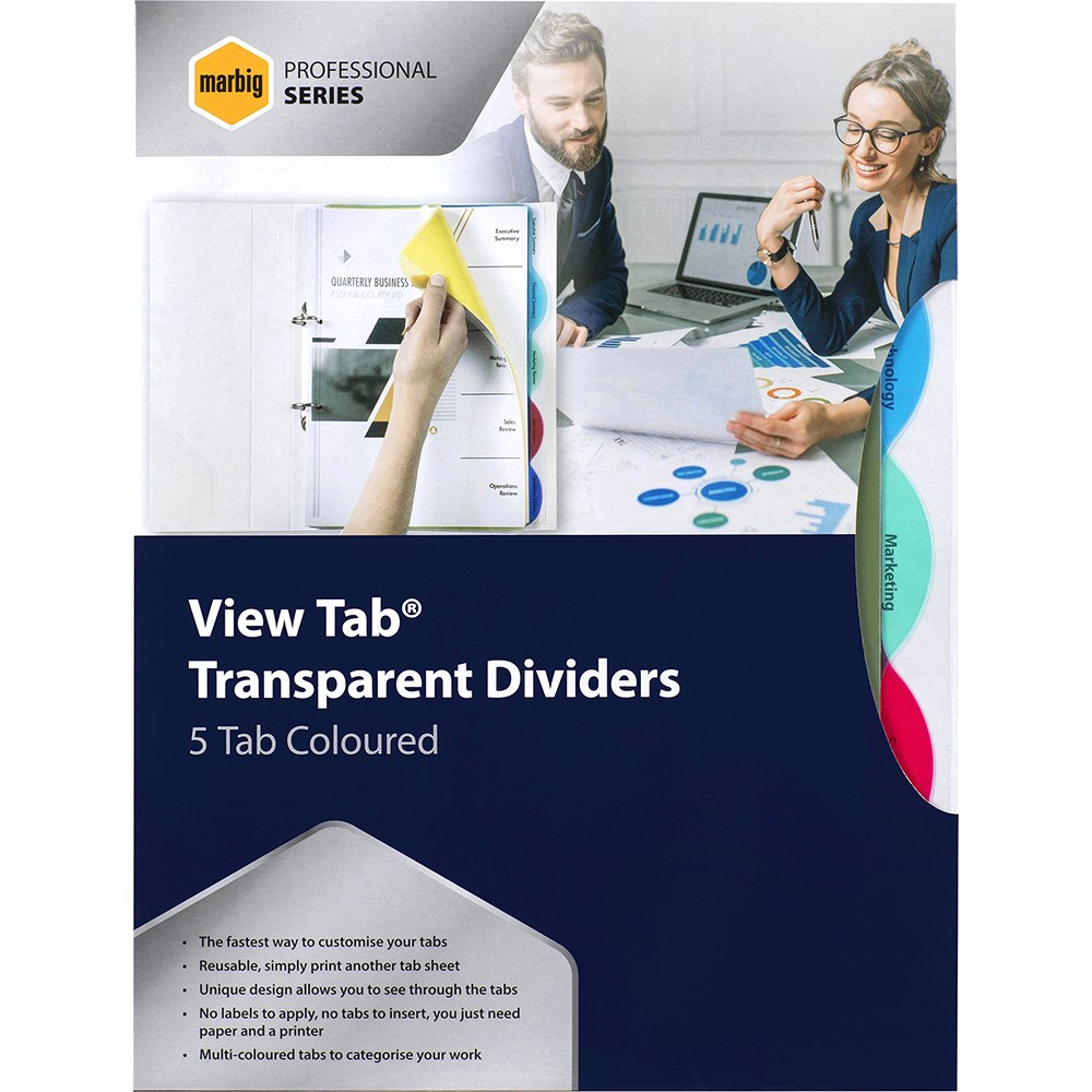 Marbig Professional Series Dividers A4 5 View Tab Transparent Multi Colour