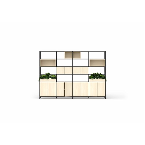 • Includes: End frame 2400 (2 pack), middle frame (1 x 2 pack and 1 x 1 pack), rails (10 pack x 4.8), shelves (5 pack x 4.8), small cubby x 2, full cupboard x 2, full cupboard x 4, small cupboard x 2 and planter box x 2. Plants not included.