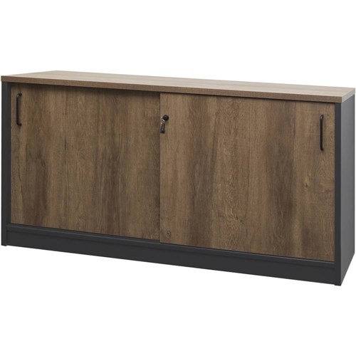 OM Premier Credenza Sliding Doors 1500W x 450D x 720mmH Regal Walnut And Charcoal