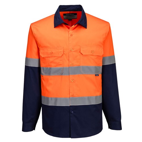 Portwest Industrial Hi-Vis Lightweight Contrast Shirt Long Sleeve Small Orange/Navy