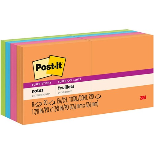 Post-it 622-8SSAU Super Sticky Notes 47.6 x 47.6mm Energy Boost Pack of 8