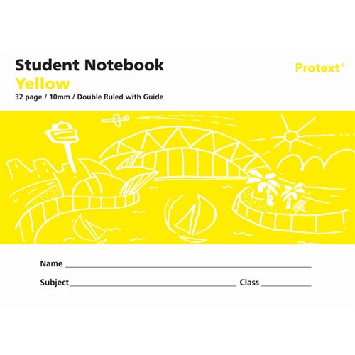 Protext Student Note Book 240 x 175mm Double Ruled 10mm/Guide 32 Page Yellow