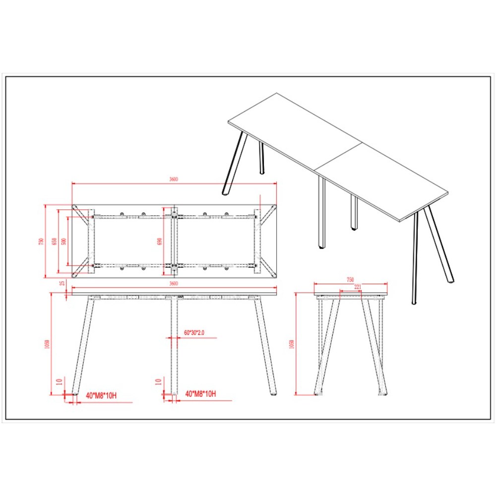 • Dimensions: 3600W x 750D x 1050mmH.