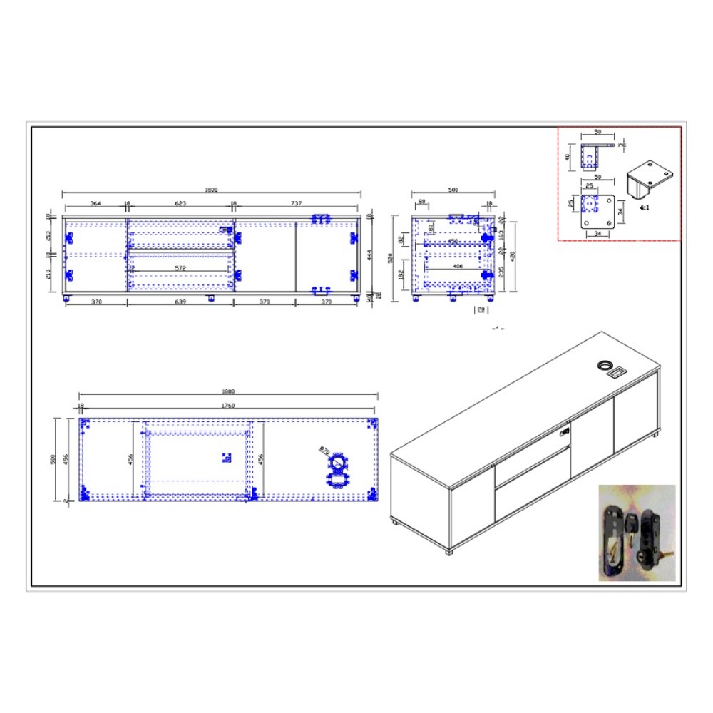 • Dimensions: 1800W x 500D x 520mmH.