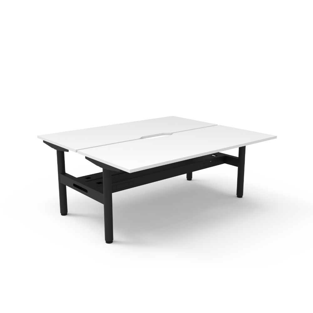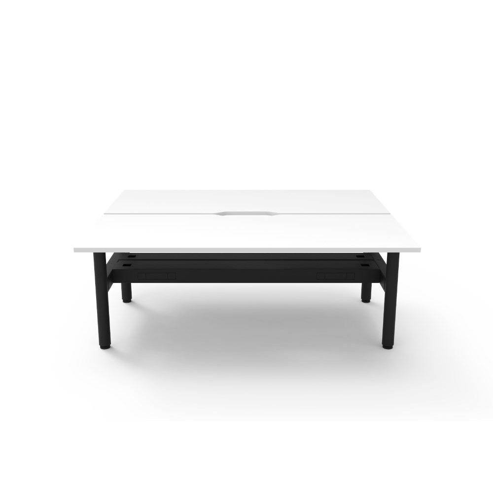 • Natural White top Black Satin frame. Double sided workstation with cable tray.