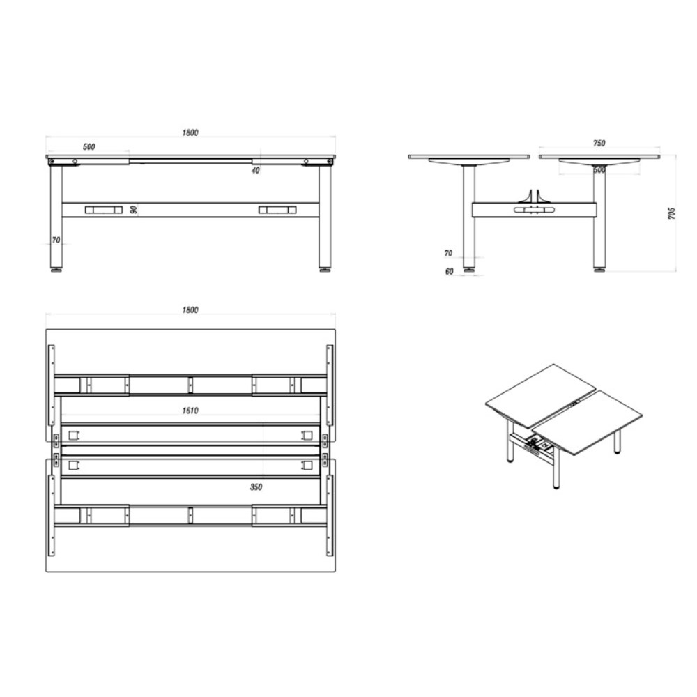 • Desk Per User Dimensions: 1800W x 750D x 730mmH. Height With Screen: 1330mm.