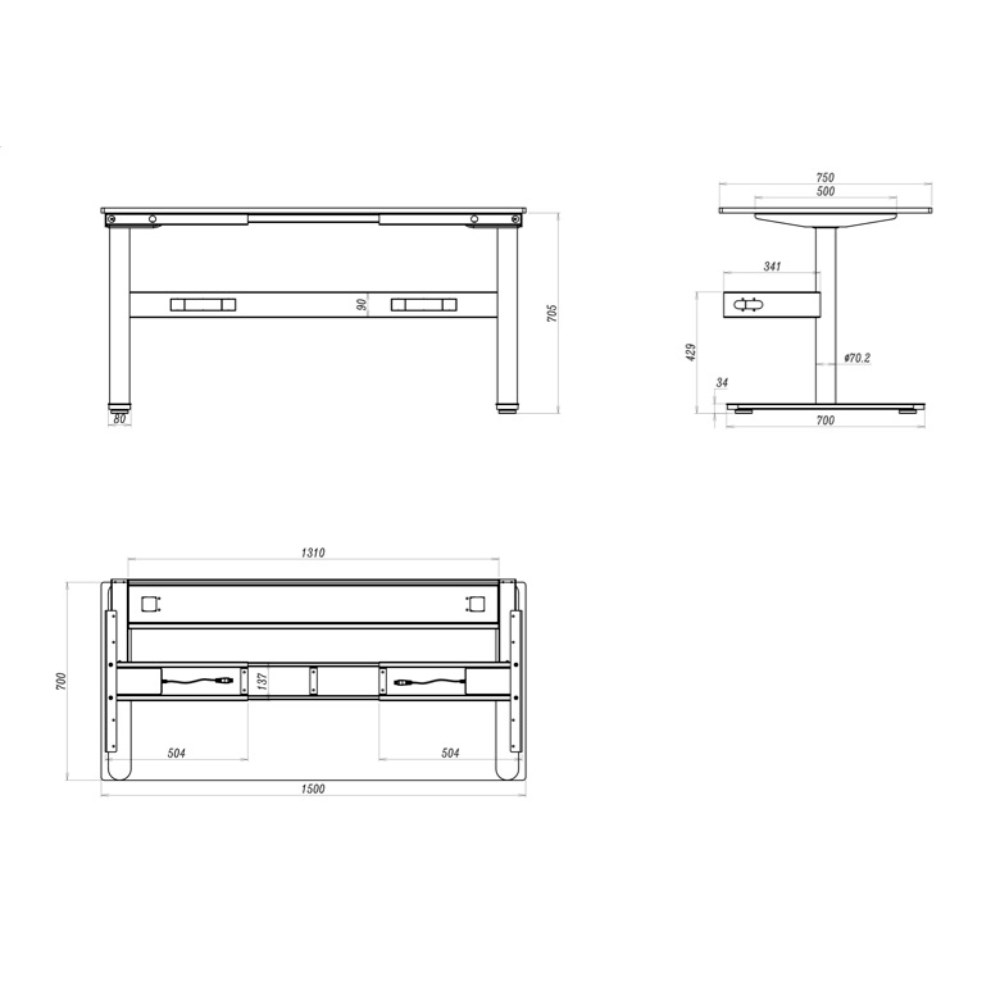 • Desk Dimensions: 1500W x 750D x 730mmH.