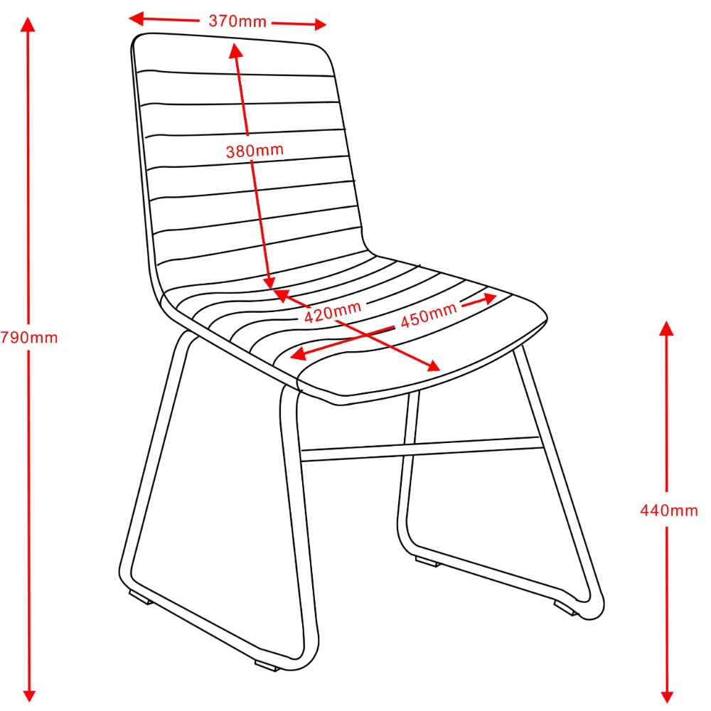 • Seat Width: 450mm. Seat Depth: 420mm. Seat Height: 440mm.