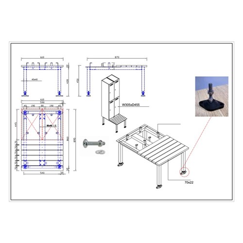 • Seat and Stand to suit bank of 2 Lockers.