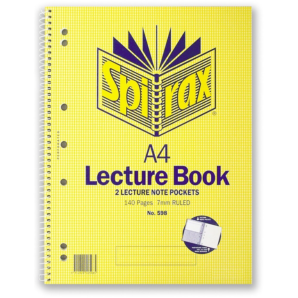 Spirax 598 Lecture Book Perforated With Note Pockets A4 Ruled 140 Page Side Opening