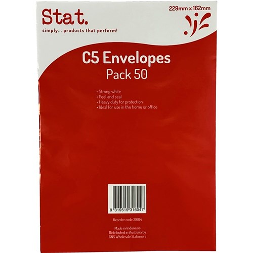 Stat Peel And Seal Envelope C5 Heavy Duty White Pack of 50