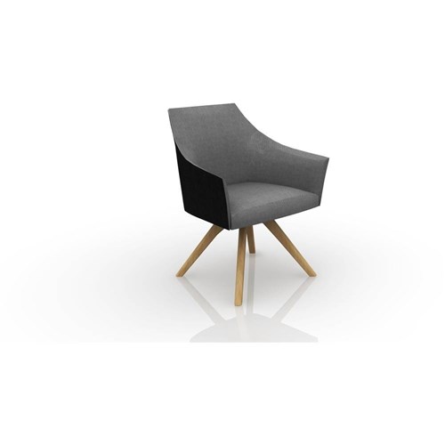 Tulip Tub Chair Timber Base Charcoal Fabric Seat Charcoal