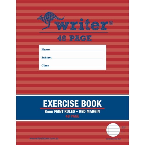 Writer Exercise Book 225 x 175mm 48 Page 8mm Ruled Red Margin