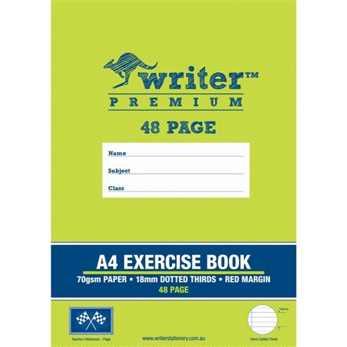 Writer Premium Exercise Book A4 48 Page 18mm Dotted Thirds Red Margin Flags