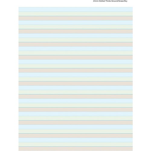 • Brown (ground), green (grass), blue (sky) printed lines for learning to write.