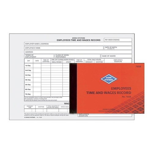• Soft covered, bound book, 55 time sheets, one sheet per week.